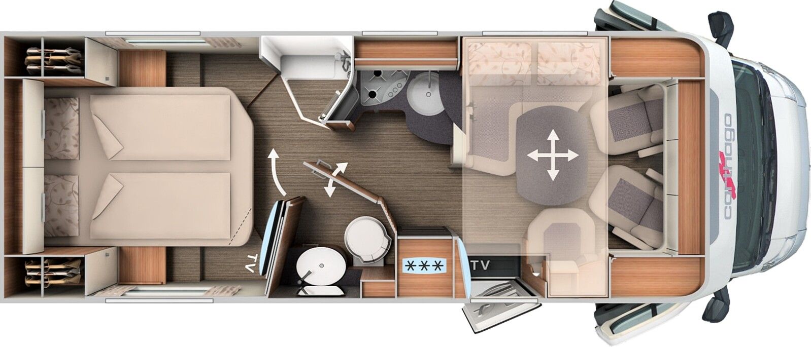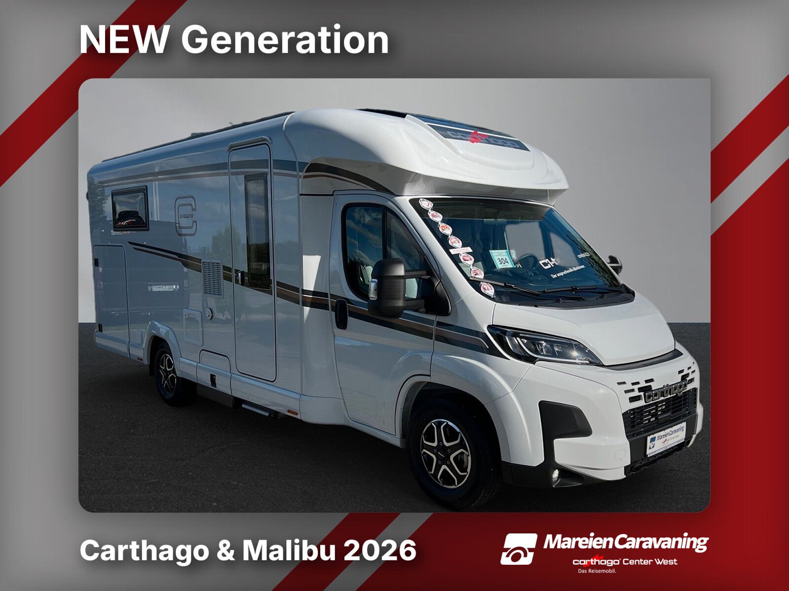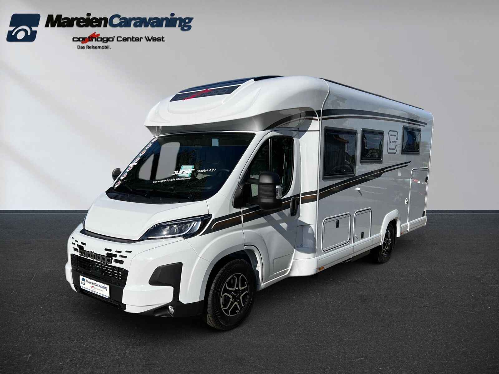 • Basis-Plus-Paket Fiat comfort 4.2 t (Carthago Radzierblenden, Skid-Plate schwarz, Nebelscheinwerfer mit Abbiegelicht, Scheinwerferrahmen in schwarz, Tempomat, Ladebooster, Kraftstofftank 90 Liter, Fahrerhausverdunklungssystem: Plissee an Front- und Seitenscheiben, Fahrerhauskomfortsitze mit Neigungs- und Höhenverstellung (vorn / hinten), Radiovorbereitung mit Dachantenne mit DAB+, Lautsprecher (4x), Radio / Moniceiver Pioneer 6,8 inkl. DAB+, Dachluke Midi-Heki mit LED-Spots über L-Wohnsitzgruppe, Große Rollergaragentür auf der Fahrerseite, XL-Aufbautür "premium two 2.0" (Breite 63 cm) mit Doppelverriegelung, Fenster- und Insektenschutzrollo, SOG-Toilettenentlüftung, Abwasserschlauchset zur komfortablen Entsorgung, USB-Steckdose im Dachstauschrank über Heckbett, Vorbereitung Dachhaubenlüfter elektrisch, Vorbereitung Solaranlage, Vorbereitung Sat-Anlage, Vorbereitung Rückfahrkamera (Einzellinse))